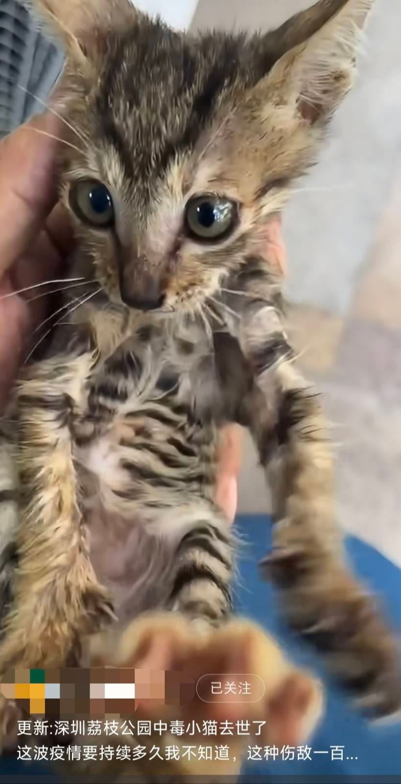该博主在社交媒体质疑:“大面积无差别喷洒(灭蚊药),公园到处弥漫有毒浓烟久久不散,消杀蚊虫难道可以毒死一切动物?”10月20日,该博主称,小猫因抢救无效去世。