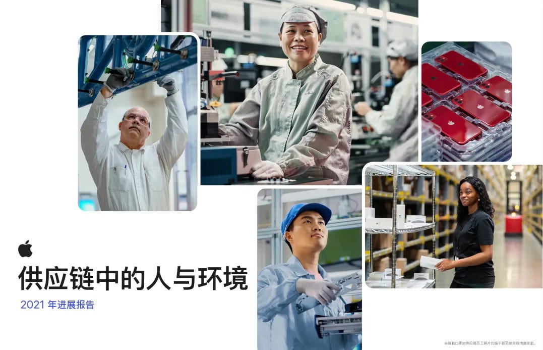 苹果作为全球知名跨国品牌,每年都会发布一份《供应链中的人与环境》报告,以此来展示对人权等社会责任的关注。赵勇在平时就关注到了这些信息。